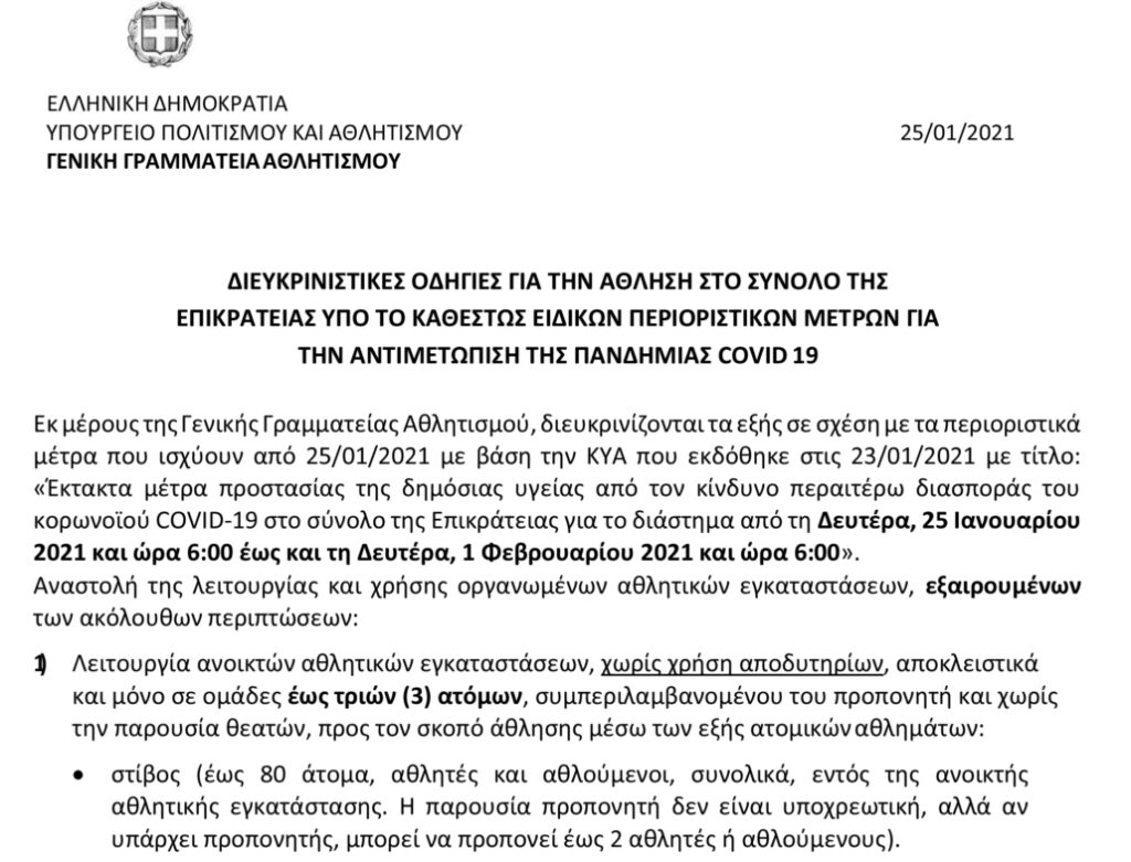 ΔΙΕΥΚΡΙΝΙΣΤΙΚΕΣ ΟΔΗΓΙΕΣ ΓΙΑ ΤΗΝ ΑΘΛΗΣΗ ΣΤΟ ΣΥΝΟΛΟ ΤΗΣ ΕΠΙΚΡΑΤΕΙΑΣ ΥΠΟ ΤΟ ΚΑΘΕΣΤΩΣ ΕΙΔΙΚΩΝ ΠΕΡΙΟΡΙΣΤΙΚΩΝ ΜΕΤΡΩΝ ΓΙΑ ΤΗΝ ΑΝΤΙΜΕΤΩΠΙΣΗ ΤΗΣ ΠΑΝΔΗΜΙΑΣ COVID 19
