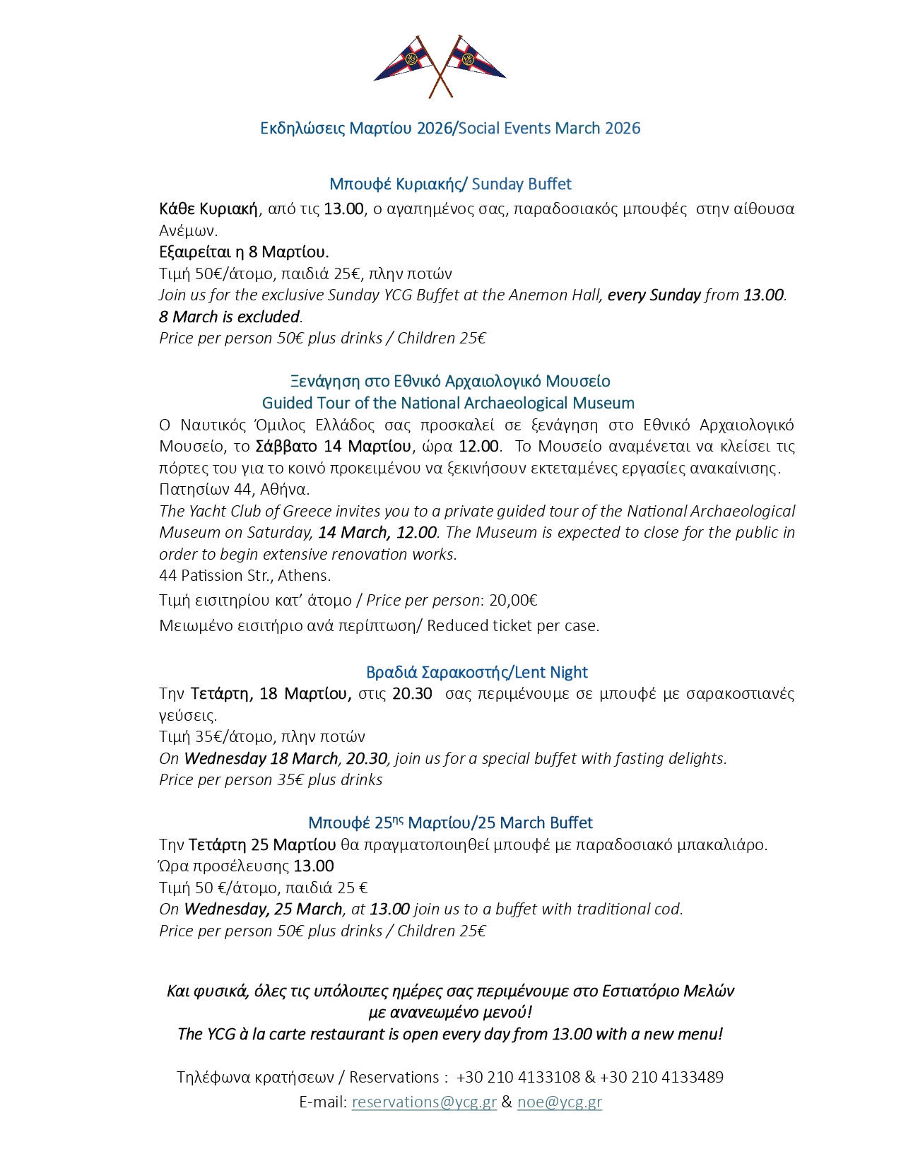 Εκδηλώσεις Μαρτίου 2026