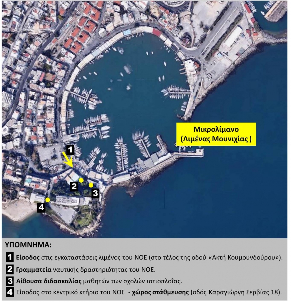 Τοποθεσία γραμματείας: Ακτή Κουμουνδούρου (στο τέρμα της οδού), εγκαταστάσεις ΝΟΕ, Μικρολίμανο (Πειραιάς)